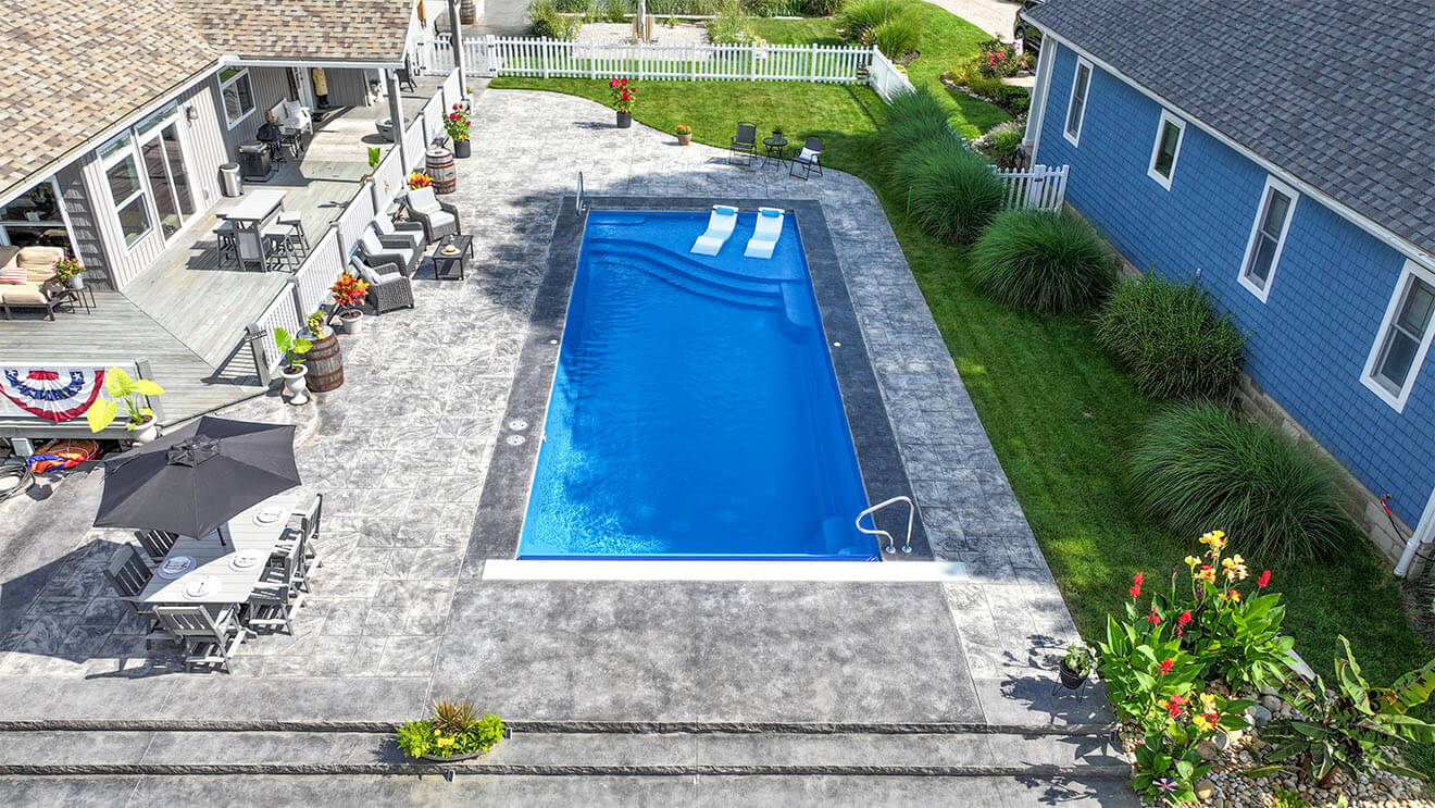The Wet Deck goes well with most of our fiberglass pools, or makes a beautiful patio accent all on its own.