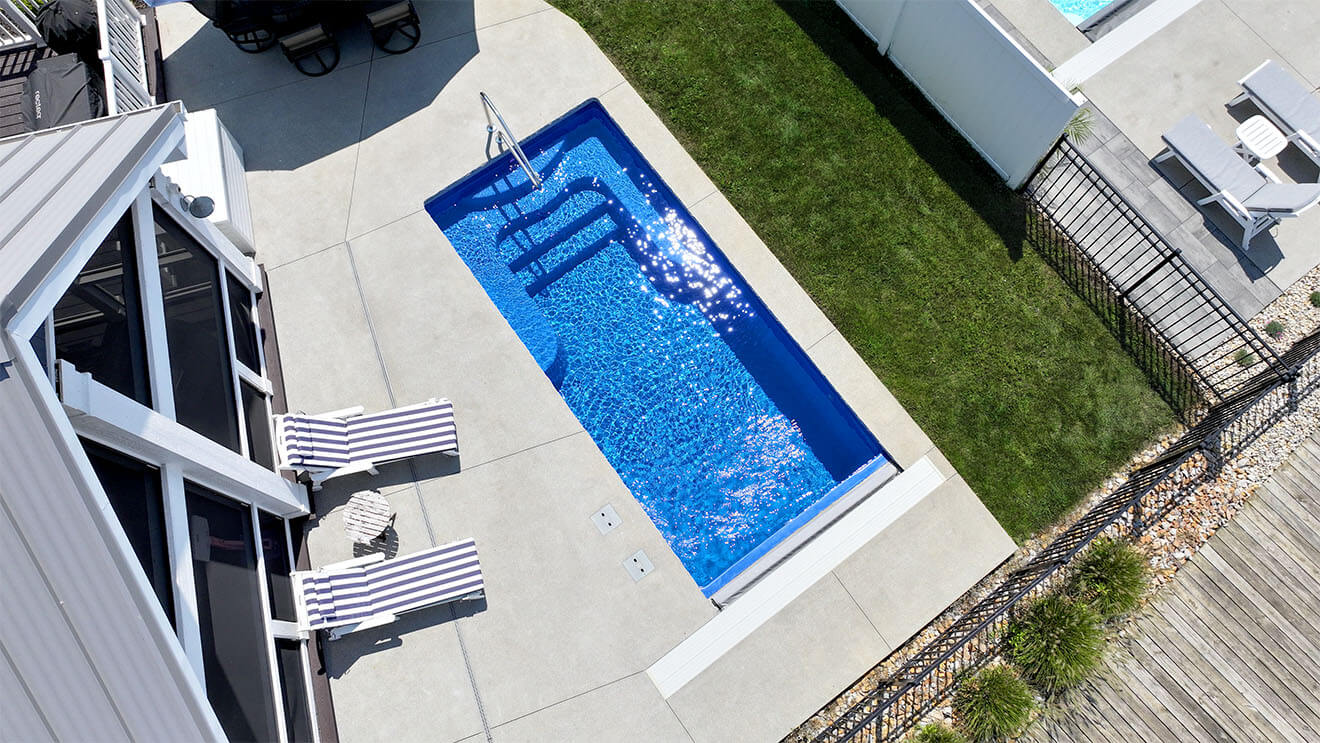Take a deep breath, kick back and relax in our smaller version of this medium size fiberglass pool.